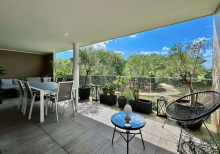 LATTES CENTRE - Villa T3/4 PLAIN PIED d'environ 75m² + GARAGE de 17m² avec mezzanine sur 466m² de terrain. Hall d'entrée avec placards, un séjour LUMINEUX donnant avec ses grandes portes fenêtres sur 2 terrasses et le jardin, une cuisine indépendant aménagée et équipée de 11m² (possibilité d'ouvrir la cloison), 2 chambres avec placards de 9m² et 11m², une belle salle d'eau de 5m² avec placards, un wc séparé. + 1 Pièce aménagée de 12m² pouvant servir de bureau ou chambre d’amis ; attenant au garage de 17m². Prestations : double vitrage en alu, volets battants en alu, climatisation réversible, placards aménagés, interphone visiophone, radiateur électrique chaleur douce, ... Extérieur : belle parcelle arborée, grande terrasse carrelée, forage, arrosage automatique, vide sanitaire, places de stationnements, ... Dans un quartier calme, à 10 minutes à pied des commerces, des écoles et du TRAMWAY. POSSIBILITE D'EXTENSION ! CONTACT : Mr Gonzalez André Tel : 06.12.48.83.71. AXE IMMOBILIER.