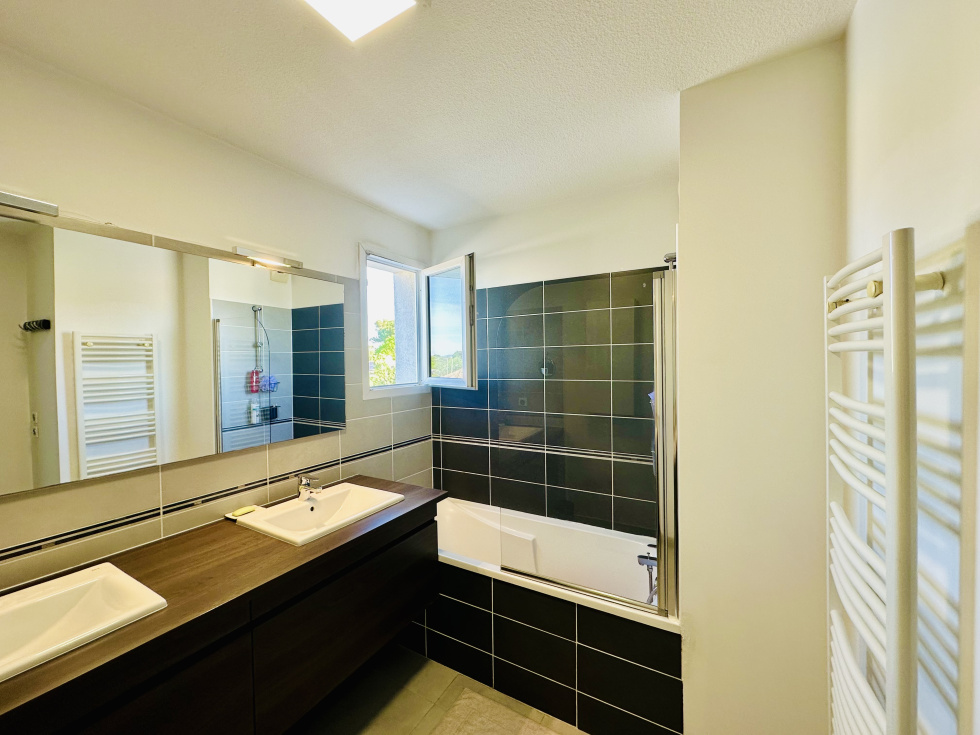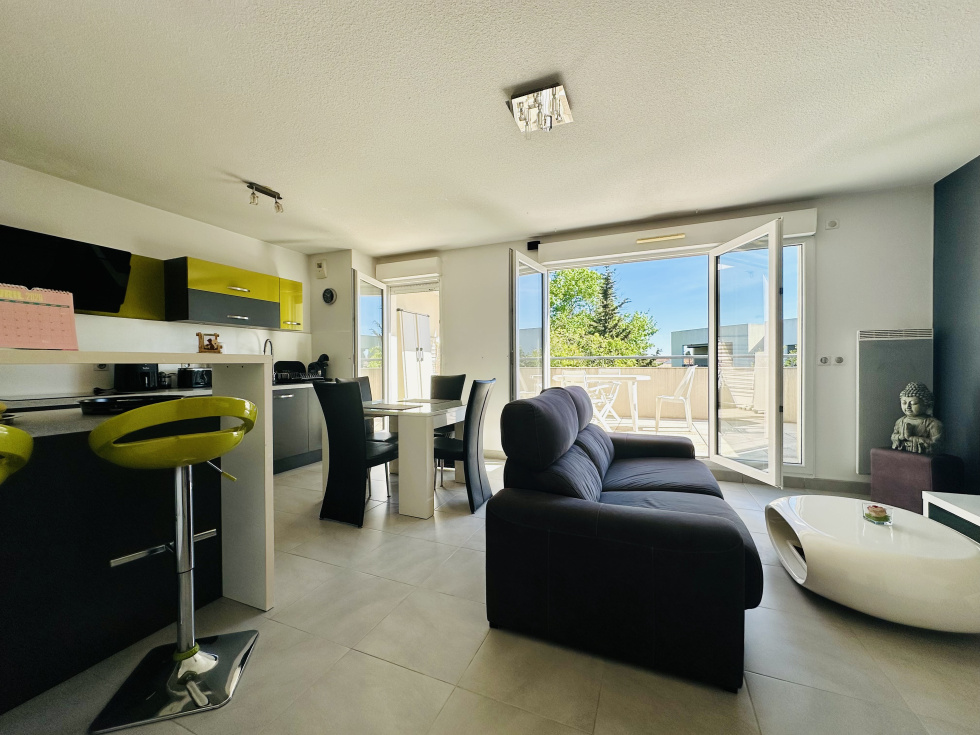 EXCLUSIVITÉ LATTES – LUMINEUX T3 DE 70 m² SANS VIS-À-VIS AU DERNIER ÉTAGE, DEUX CHAMBRES, CELLIER, GRANDE TERRASSE EXPOSÉE SUD-EST, GARAGE + PARKING EN SOUS-SOL, RÉSIDENCE DE STANDING AU CALME, À PROXIMITÉ DES COMMERCES ET TRANSPORTS Découvrez, niché dans un quartier calme et en plein essor de Lattes, un chaleureux T3 d’environ 70 m², situé dans une résidence sécurisée de haut standing, entourée de végétation, tout en étant à quelques minutes des commerces, plages et transports du quotidien. Une entrée spacieuse avec de nombreux rangements dessert une première chambre de 11 m² avec placard aménagé et belle hauteur sous plafond, ainsi qu’une seconde chambre avec buanderie et espace dressing / rangement d’environ 14 m², séparée d’une salle de bain avec double vasque, baignoire et domotique intégrée. Un WC indépendant avec rangement sur mesure complète l’espace nuit, bien pensé. Le véritable atout : un grand séjour lumineux, bénéficiant d’une exposition idéale, avec de nombreuses baies vitrées, d’environ 28 m², ainsi qu’une cuisine entièrement équipée de confection haut de gamme, le tout donnant sur une magnifique terrasse de 20 m², entourée de végétation, sans aucun vis-à-vis. À RETENIR : garage de 16 m² + grand parking en sous-sol, résidence en excellent état, faibles charges car tout est inclus, domotique solaire, proximité idéale, beaux volumes, quartier en plein essor et calme. CONTACT : uniquement sur rendez-vous – M. Martin Pierrick : 07 86 85 18 52 AXE IMMOBILIER